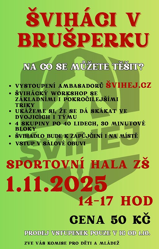 dovolte, abychom Vás srdečně pozvali na sportovní akci v Brušperku, která se uskuteční v sobotu 1. listopadu 2025 ve sportovní hale ZŠ v Brušperku.