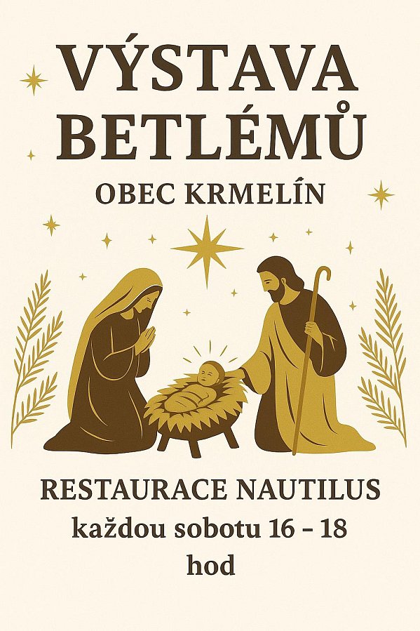 srdečně Vás zveme na výstavu betlémů v Krmelíně, kde se můžete v předvánočním shonu na chvíli zastavit a zklidnit mysl. Přijďte si vychutnat klidnou atmosféru a kouzlo tradičních betlémů na výstavu do restaurace Nautilus, která je otevřena každou sobotu od 16.00 do 18.00.